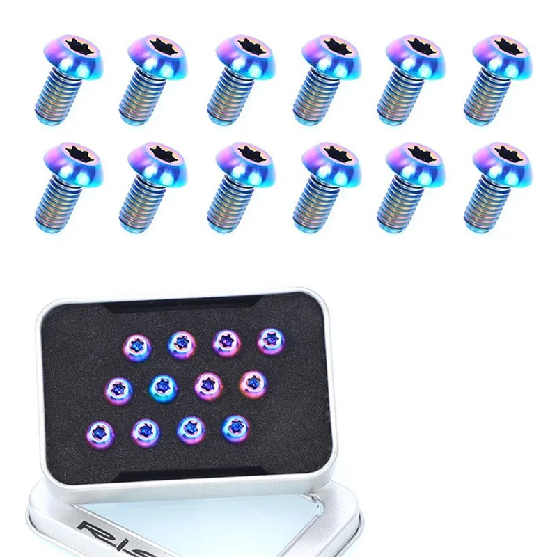 .image of RISK 12pcs M5*10mm T25 Ti Disc Brake Rotor Bolts for MTB Bicycle Road bike Titanium Torx Rotor Scre
